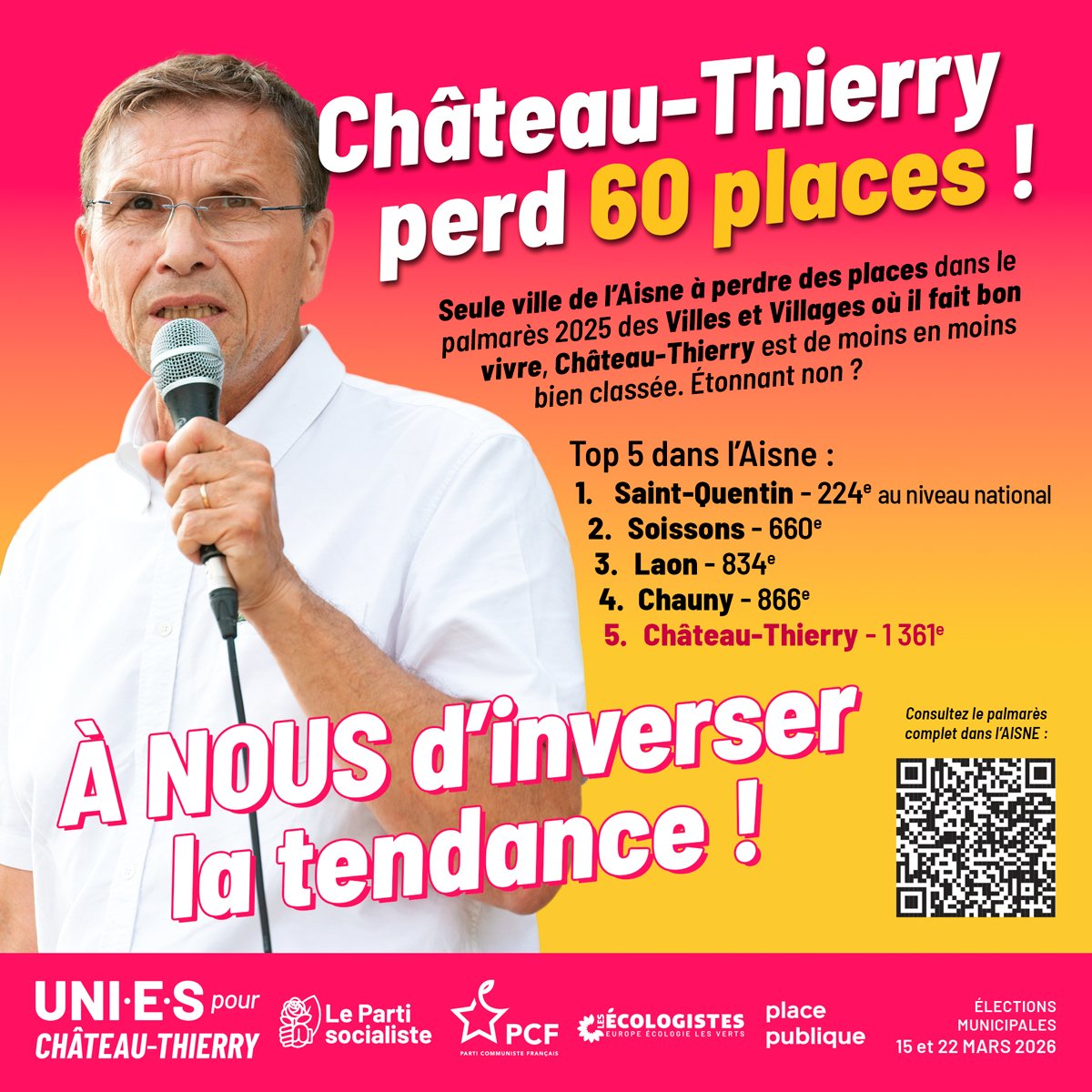 Seule ville de l’Aisne à perdre des places dans le palmarès 2025 des Villes et Villages où il fait bon vivre, Château-Thierry est de moins en moins bien classée. Étonnant non ?